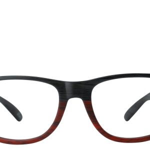 Two-tone frame featuring matte black and deep wood grain patterns. complete with prescription lenses custom-made in our US-based optical lab. Includes hard case.