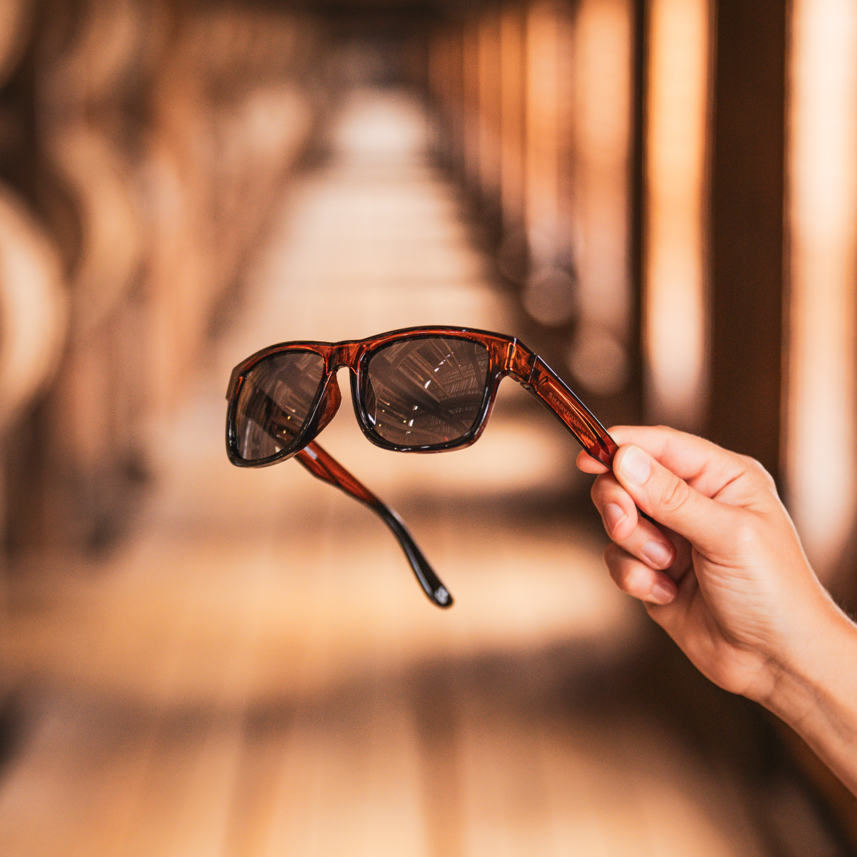 Stylish and versatile. this lightweight frame features rich amber tones with copper accents and a charred barrel design for all-day comfort.