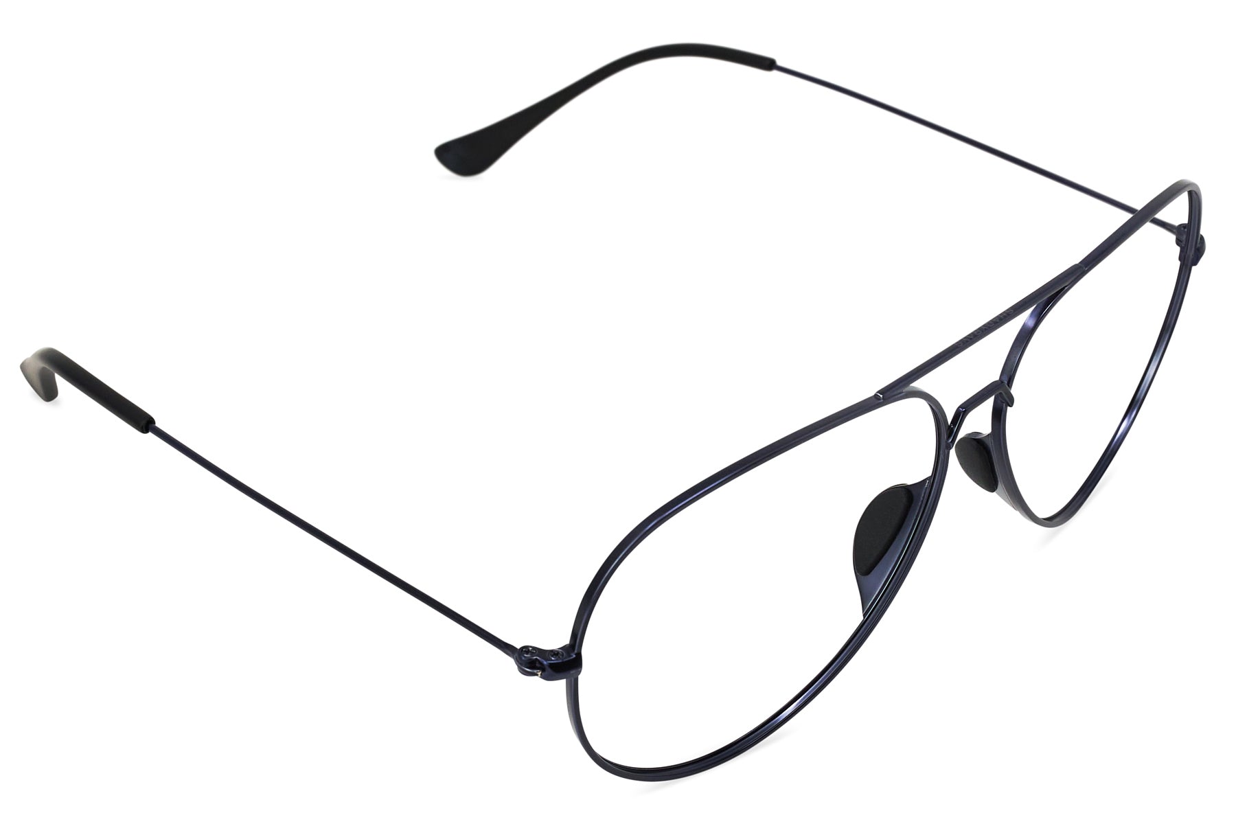 Ultra-Premium Matte Navy Metal Aviator Frame with flex-fit arms and comfortable nose pieces that won’t get caught in your hair. Complete with prescription lenses custom-made for you in our US-based optical lab. Includes signature hard case.